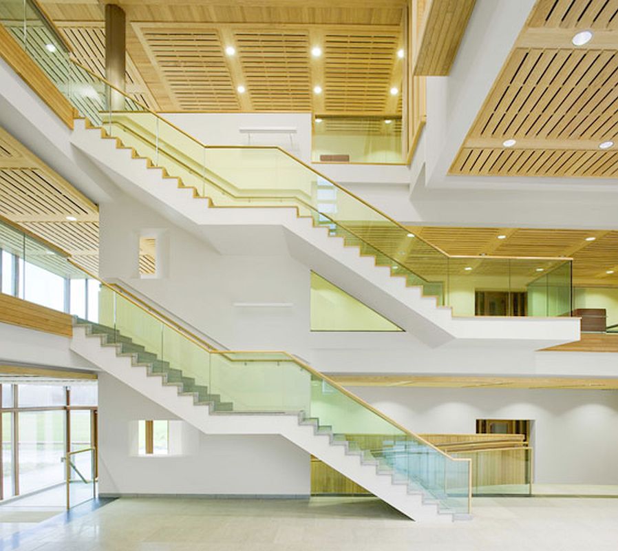 The three fingers of the office wings were centred around a central atrium hub, containing the main entrance and feature stairs. The building was 2/3 stories in height and has been designed for possible future expansion. PUNCH Consulting Engineers designed the structural frame of the building in concrete with precast concrete floors and a lightweight steel roof. The drainage system for the development was designed to tie in with the existing drainage system for the campus, where a number of ponds have been formed in the landscaping. Attenuation of surface water flows is provided in the ponds, rather than by underground storage systems.