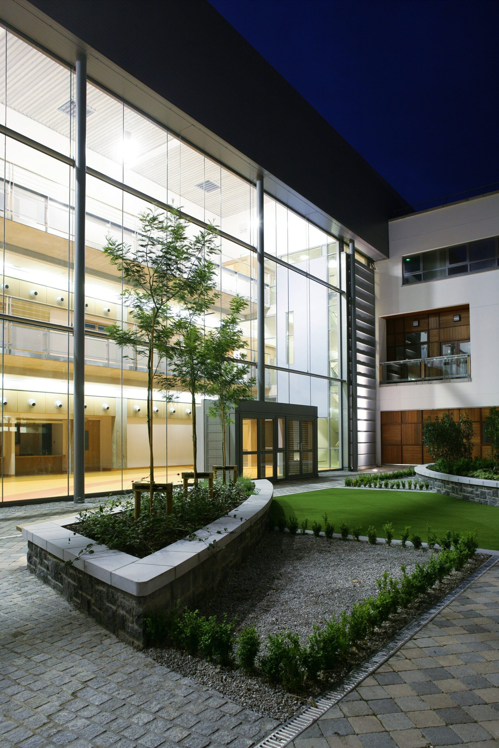 The overall hospital campus now consists of a new glazed main entrance concourse, accident & emergency, general medical and surgical wards, coronary care unit, rehabilitation unit, maintenance department, ambulance building, at-grade car parking facilities and an energy centre.