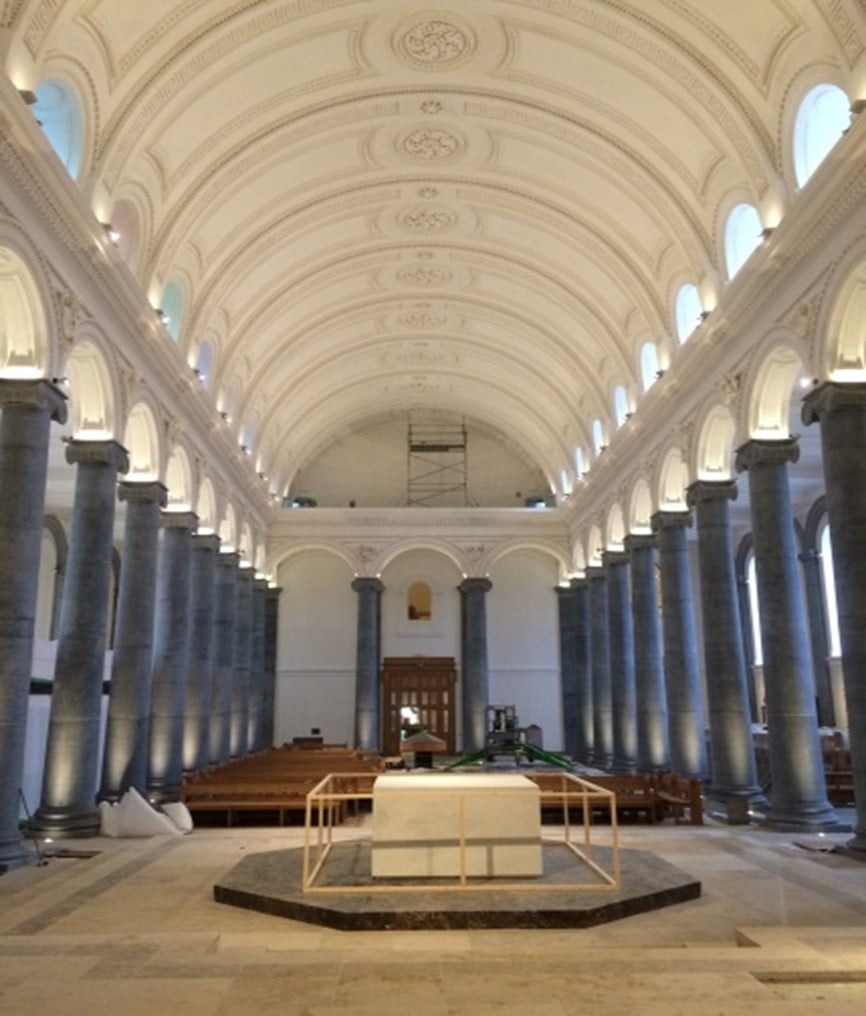 The foundation stone for St. Mel’s Cathedral was laid in 1840, completed in c.1890 and was consecrated in 1893. In the early hours of Christmas Day, 2009 fire broke out in the Sacristy of the Cathedral, destroying the interior and roof of the Cathedral, with some damage to the external facing stone.